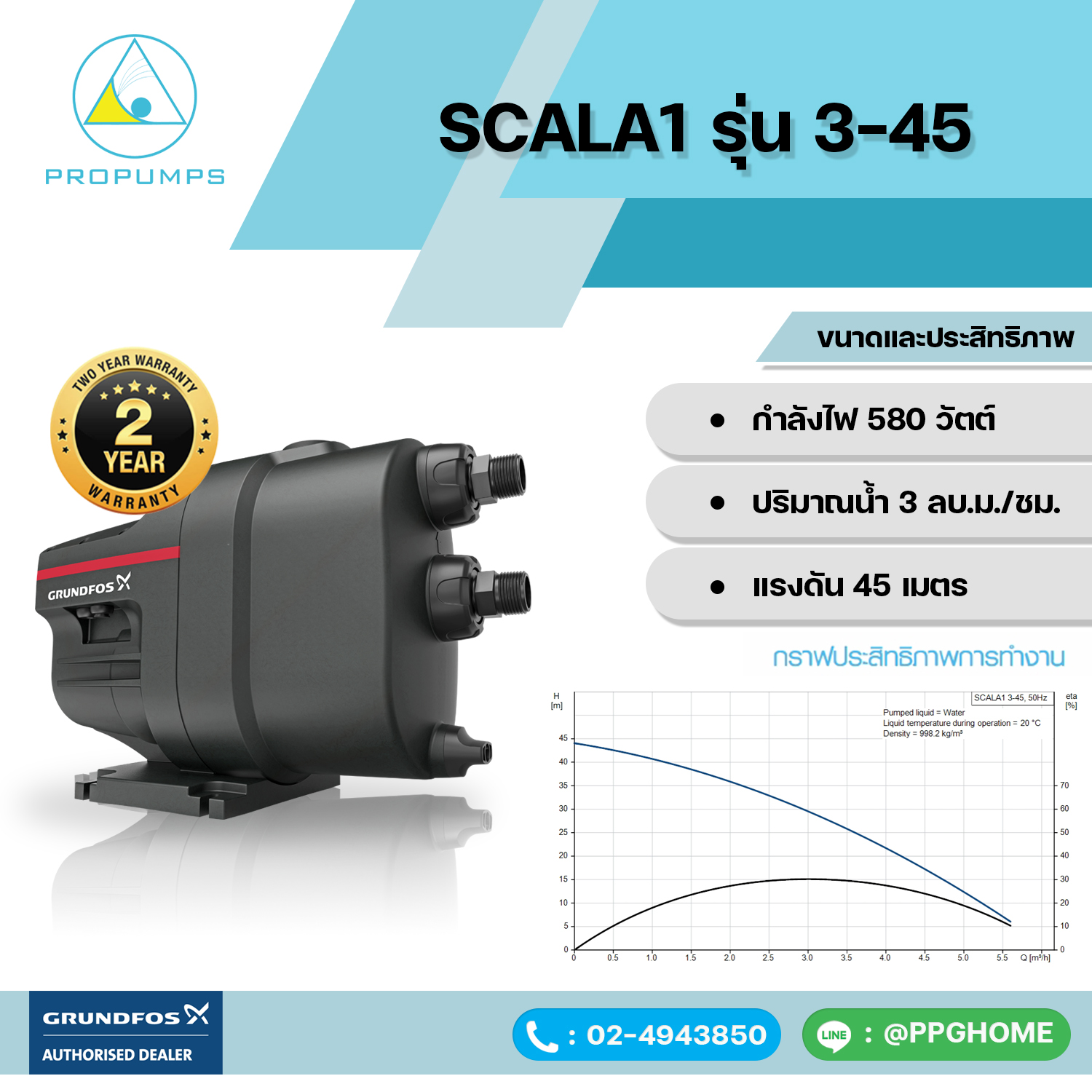 SCALA1 3-45 เหมาะกับบ้าน 2-3 ชั้น ห้องน้ำ 3-4 ห้อง